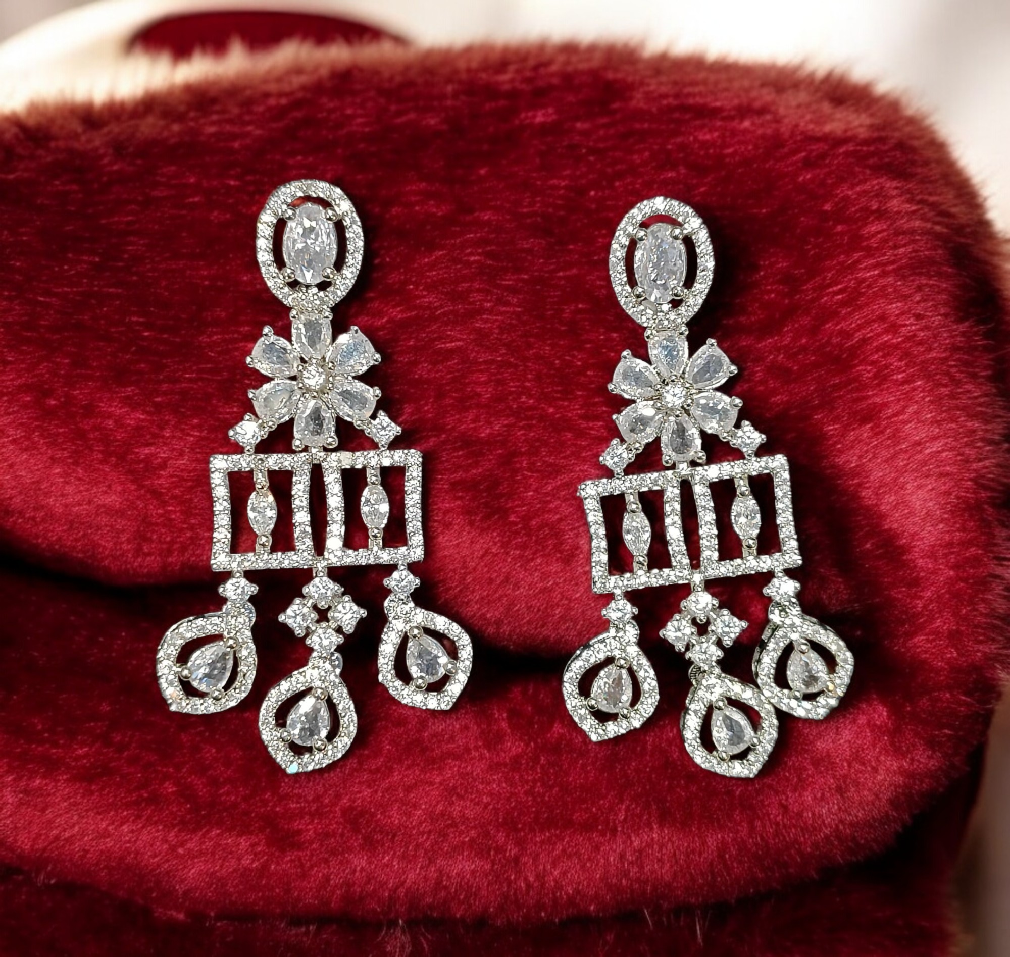 Luxury Crystal Chandelier Necklace & Earrings Combo White