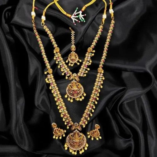 Pratima Jewellers Gold Plated Brass South Indian Traditional Bridal Necklace
